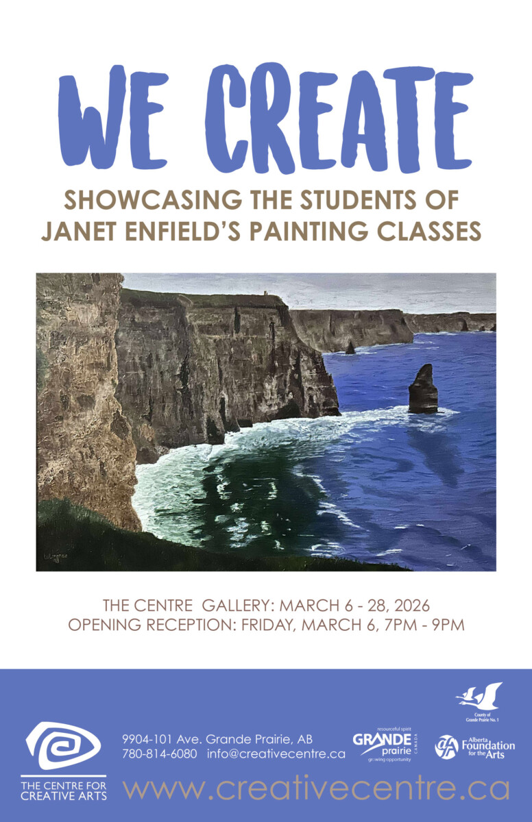 We CreateCentre Gallery 06 Mar - 28 Mar “We Create” showcases the talented acrylic and oil painting students of Janet Enfield. Join us on Friday, March 6 from 7pm to 9pm for the Opening Reception. It is free to attend with light refreshments and a cash bar.